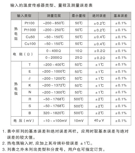 標(biāo)準(zhǔn)精度:±0.1%(參見(jiàn)溫度傳感器類(lèi)型、量程及測(cè)量誤差表)
