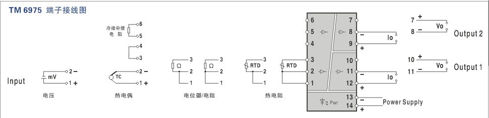 TM6975  熱電阻/熱電偶通用輸入,智能溫度變送器 一入二出特性