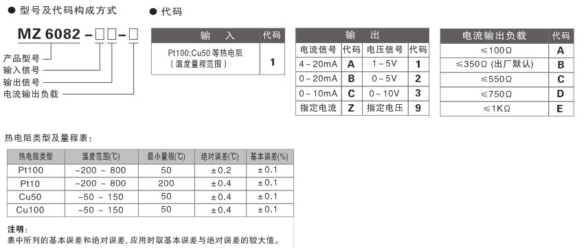 MZ6082 熱電阻溫度變送器 一入一出特性