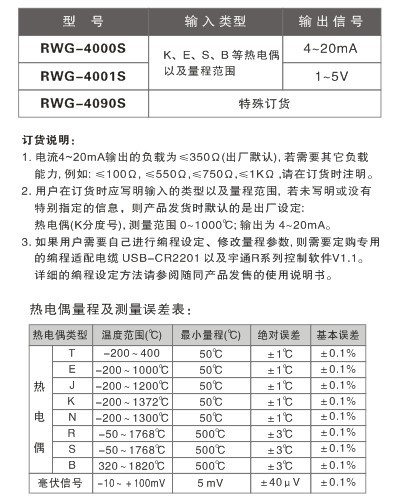 適用于K、E、S、B 等熱電偶或毫伏信號輸入。
