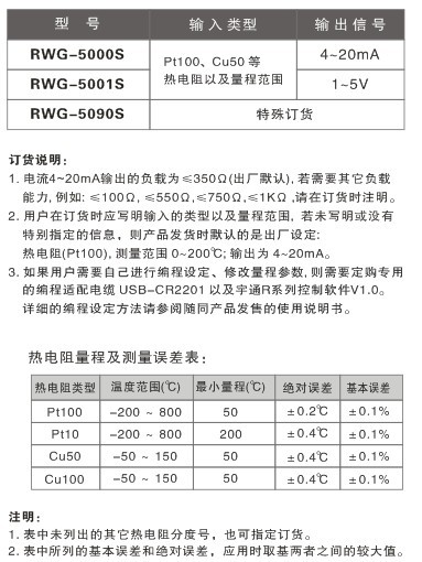 RWG-5001S,RWG-5001S-PT100,RWG-5001S-PT10,RWG-5001S-CU5001S,RWG-5001S-CU100,
