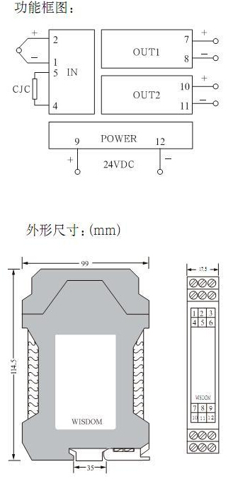 產(chǎn)品型號:WS90602熱電偶全隔離雙輸出信號調(diào)理器