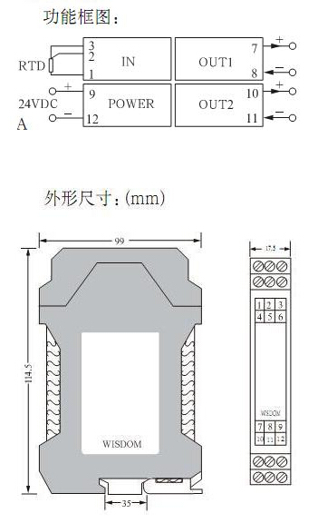 產(chǎn)品型號:WS90502熱電阻全隔離雙輸出信號調(diào)理