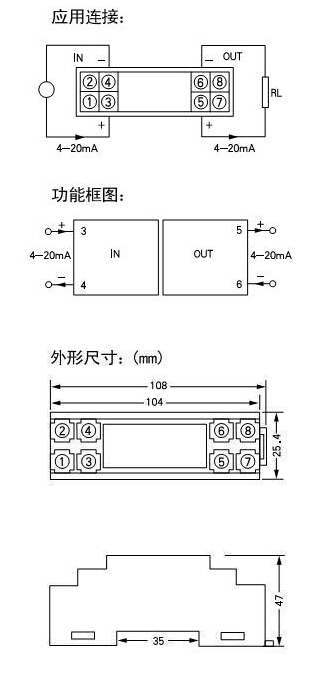 無需外接電源可正常工作,輸入和輸出隔離傳輸精度好,DIN T型標準卡裝方式。
