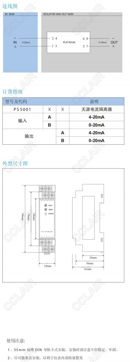 PS5001AA,PS5001AB,PS5001BA,PS5001BB,PS5001無源電流隔離器(一入一出)