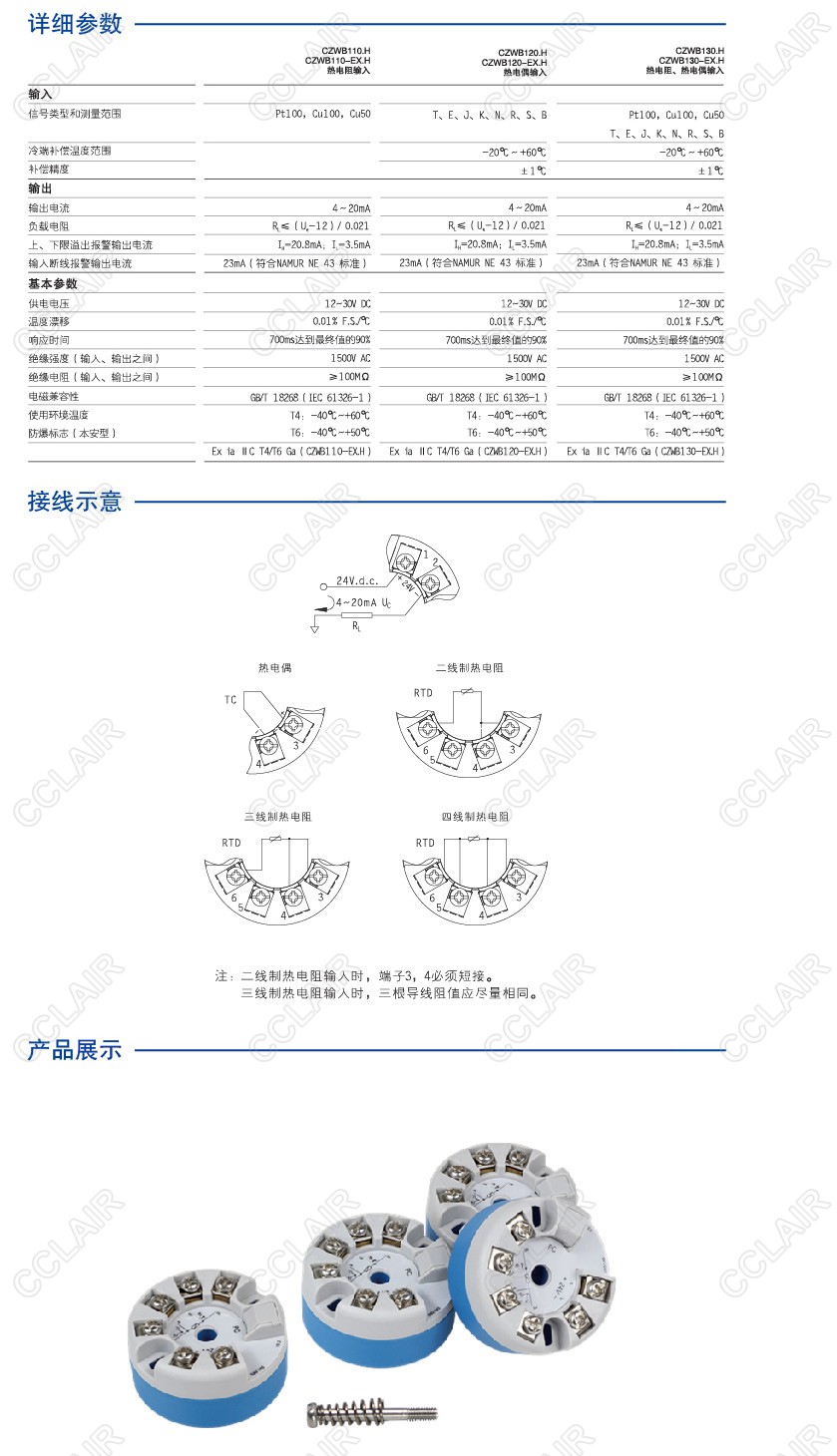 CZWB130.H 熱電阻熱電偶輸入、HART智能隔離溫度變送器 支持HART通信 輸入與輸出隔離,抗干擾性強(qiáng),信號類型和測量范圍可編程,橢圓安裝孔,可適配多種傳感器殼體。 CZWB130-EX.H 熱電阻熱電偶輸入、HART智能、本安防爆隔離溫度變送器 支持HART通信 輸入與輸出隔離,抗干擾性強(qiáng),信號類型和測量范圍可編程,橢圓安裝孔,可適配多種傳感器殼體。