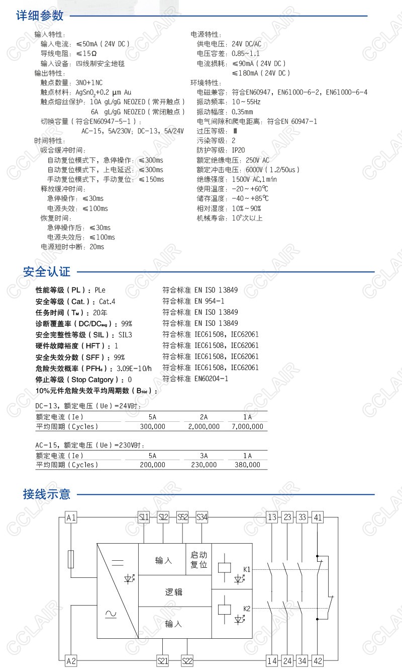 CZSR8301-3A1B是適用于安全地毯輸入,具有3路NO(常開)安全輸出觸點和1路NC(常閉)輔助輸出觸點的安全繼電器。它可支持雙通道操作,手動或自動復位功能