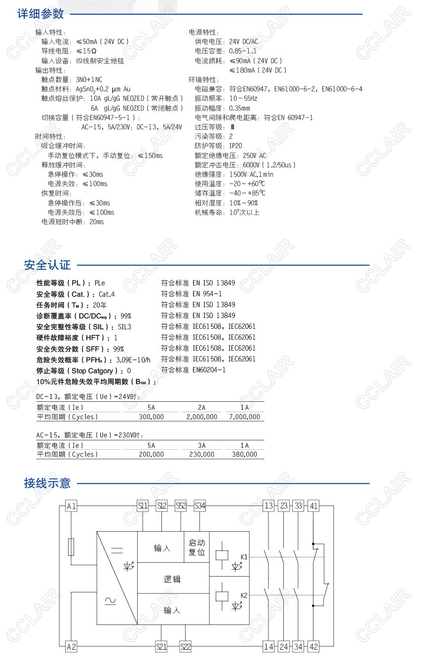 CZSR8301-3A1B(M)是適用于安全地毯輸入,具有3路NO(常開)安全輸出觸點(diǎn)和1路NC(常閉)輔助輸出觸點(diǎn)的安全繼電器。它支持雙通道操作,手動(dòng)復(fù)位,并具有復(fù)位按鈕監(jiān)控功能。