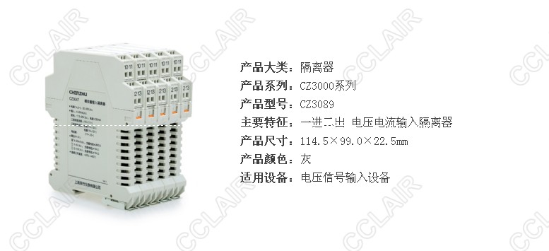 CZ3088 二進(jìn)二出 電壓電流輸入隔離器 二進(jìn)二出,支持多種電壓電流信號(hào)輸入,多種電壓電流信號(hào)輸入 可向現(xiàn)場(chǎng)儀表提供隔離電源 CZ3089 一進(jìn)二出 電壓電流輸入隔離器 一進(jìn)二出,支持多種電壓電流信號(hào)輸入,多種電壓電流信號(hào)輸入 可向現(xiàn)場(chǎng)儀表提供隔離電源