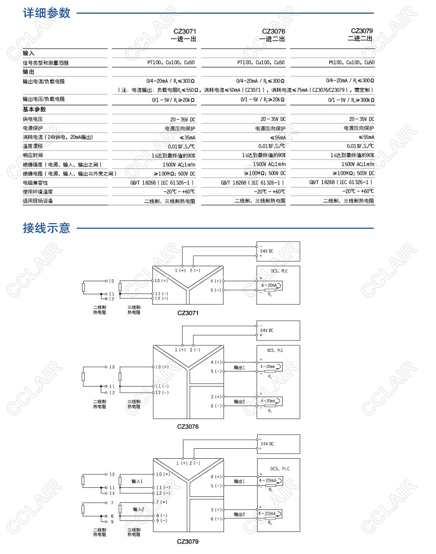 CZ3076 一進(jìn)二出 熱電阻輸入隔離器