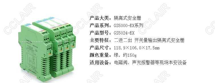 開關量輸出隔離式安全柵,將安全區(qū)的電源通過開關控制,驅(qū)動危險區(qū)的現(xiàn)場本安設備,它適用于驅(qū)動如電磁閥、聲光報警器等一些小功率本安設備。它有二個獨立的通道。輸入輸出隔離,允許控制開關直接連到24VDC供電回路的任一端。
