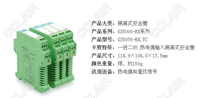 型號(hào): GS5076-EX.TC 一進(jìn)二出 熱電偶輸入隔離式安全柵