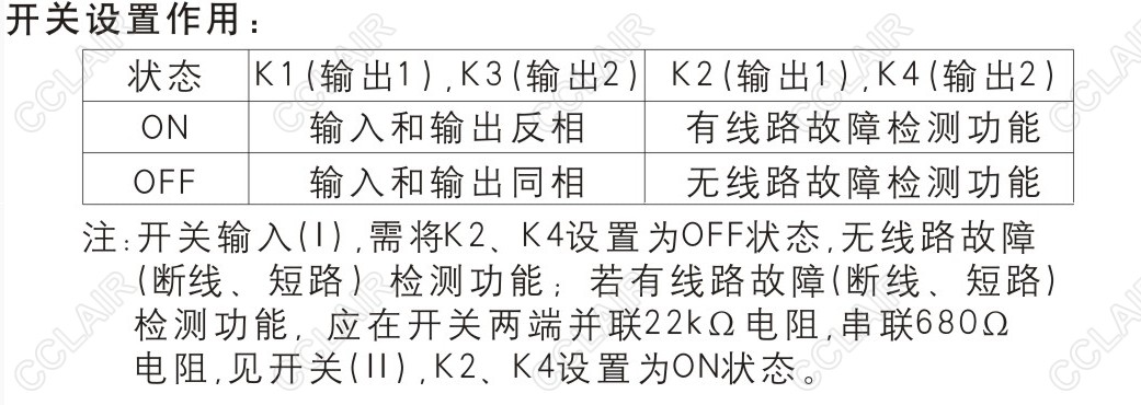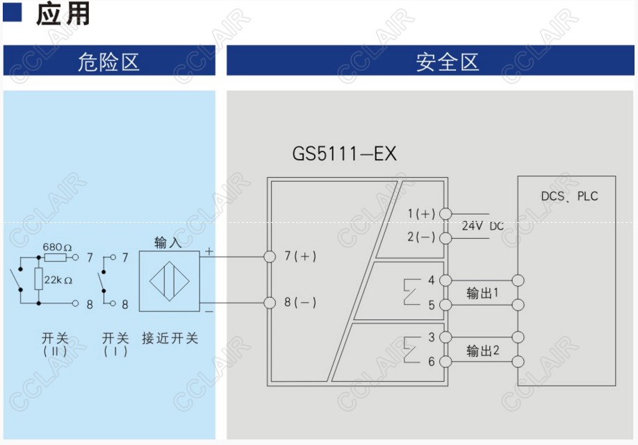開關(guān)量輸入,繼電器輸出隔離柵,接收來(lái)自危險(xiǎn)區(qū)的干接點(diǎn)開關(guān)或NAMUR接近開關(guān)輸入,通過安全柵隔離傳輸?shù)桨踩珎?cè)繼電器輸出,各通道可獨(dú)立設(shè)置為輸入和輸出同相或反相控制,同時(shí)有輸入線路故障檢測(cè)報(bào)警指示功能。該產(chǎn)品需要獨(dú)立供電,電源、輸入和輸出三隔離