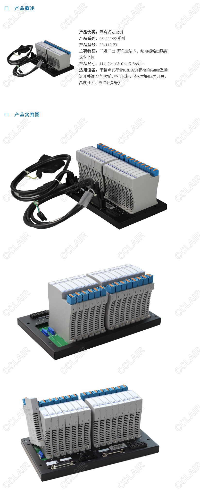 GS4112-EX為開關(guān)量輸入,繼電器輸出隔離柵,接收來(lái)自危險(xiǎn)區(qū)的干接點(diǎn)開關(guān)或NAMUR接近開關(guān)輸