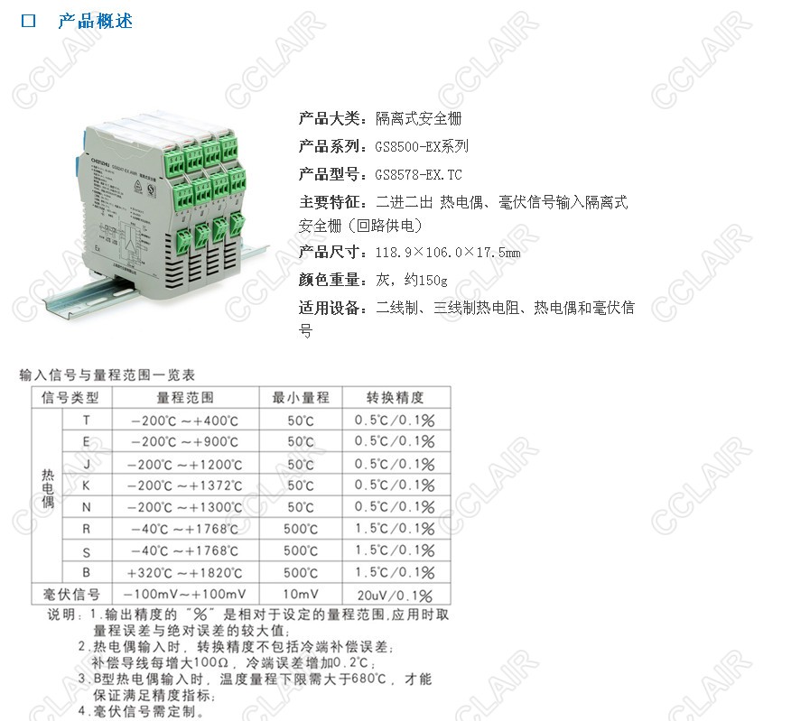 GS8578-EX.TC 二進(jìn)二出 熱電偶、毫伏信號(hào)輸入隔離式安全柵(回路供電)