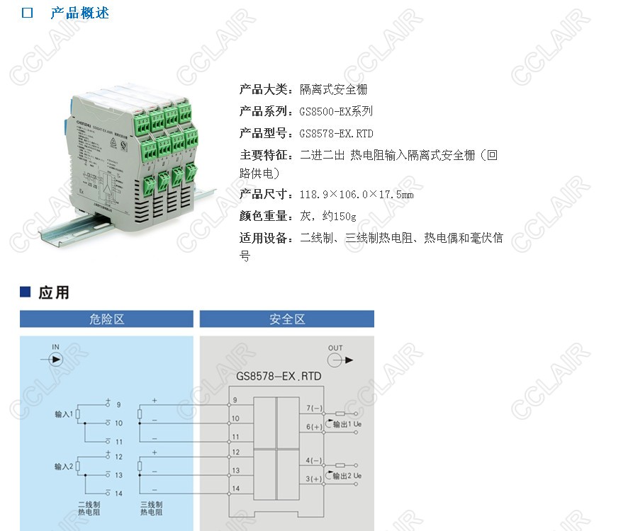 GS8578-EX.RTD 二進(jìn)二出 熱電阻輸入隔離式安全柵(回路供電)