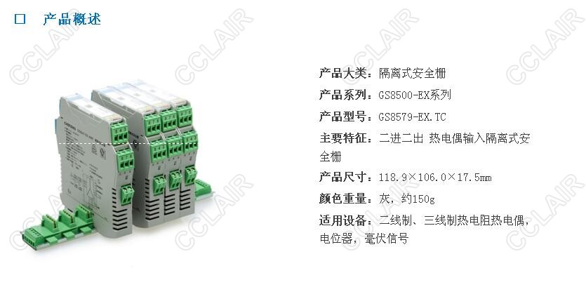 隔離式安全柵,將現(xiàn)場的熱電阻、熱電偶、毫伏信號、電位器信號轉(zhuǎn)換成0/4~20mA的電流信號或0~5V電壓信號,從危險區(qū)隔離傳送到安全區(qū)。它具有冷端補償功能,是智能型的,可通過計算機對熱電阻、熱電偶、電位器的分度號、量程范圍等進行組態(tài)。該產(chǎn)品需要獨立供電,電源、輸入和輸出的三隔離。