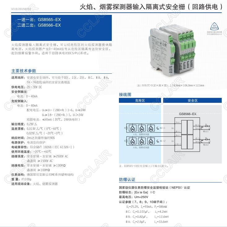 GS8566-EX 二進二出 火焰探測器輸入隔離式安全柵