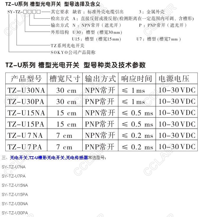 SY-TZ-U30NA,SY-TZ-U30PA,SY-TZ-U15NA,SY-TZ-U15PA,SY-TZ-U7NA,TZ-U槽形