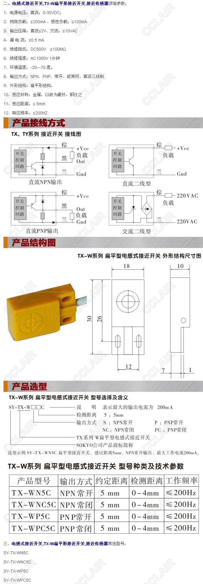 SY-TX-WN5C,SY-TX-WNC5C,SY-TX-WP5C,SY-TX-WPC5C,TX-WN5C,TX-W扁平形接近開關(guān)