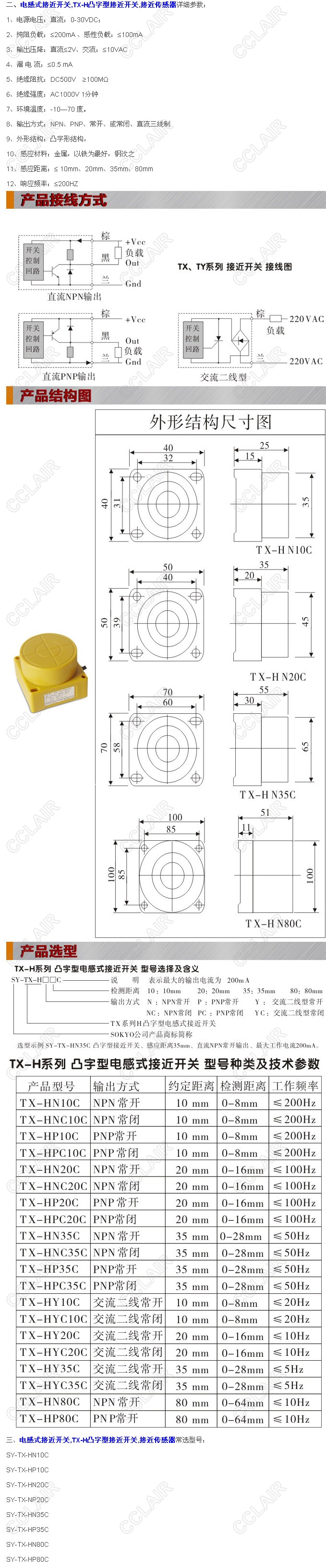 SY-TX-HN10C,SY-TX-HNC10C,SY-TX-HP10C,SY-TX-HPC10C,SY-TX-HN20C,TX-H凸字型接近開關(guān)