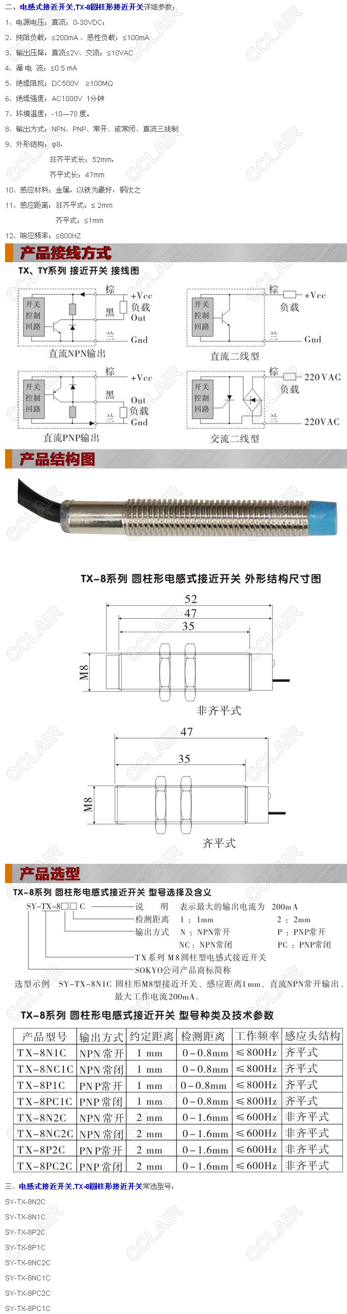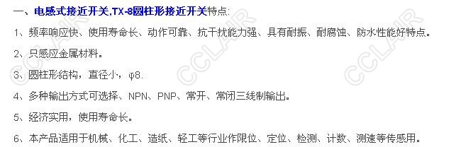 SY-TX-8N1C,SY-TX-8NC1C,TX-8P1C,TX-8PC1C,SY-TX-8N2C,SY-TX-8NC2C,TX-8圓柱形接近開(kāi)關(guān)