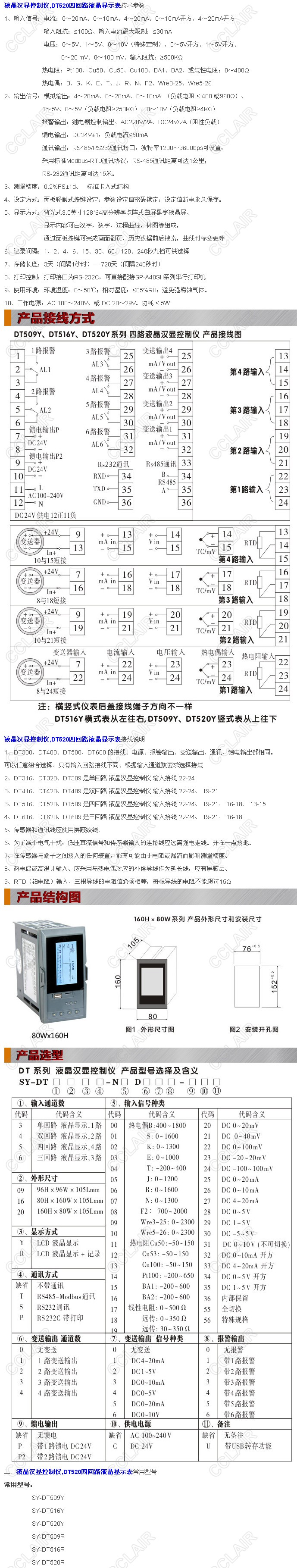 SY-DT520Y,SY-DT520R,SY-DT520YT,SY-DT520RT,SY-DT520YS,DT520四回路液晶顯示控制儀