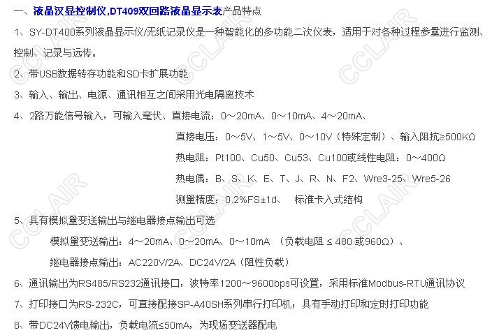 SY-DT409Y,SY-DT409R,SY-DT409YT,SY-DT409RT,SY-DT409YS,DT409雙回路液晶顯示控制器