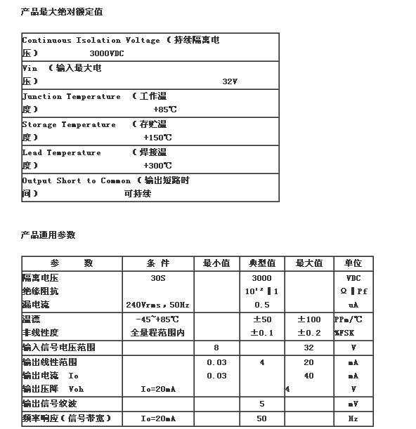 ·信號(hào)輸入、輸出3000VDC隔離電壓 ·隔離4-20mA或0-20mA信號(hào)傳輸