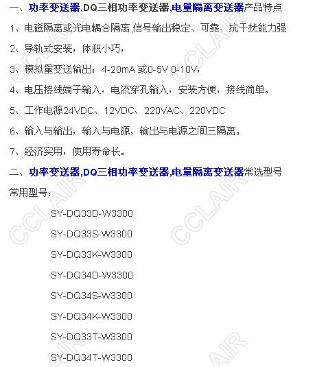 SY-DQ33D-W3300,SY-DQ33S-W3300,SY-DQ33K-W3300,SY-DQ34D-W3300,DQ三相功率變送器