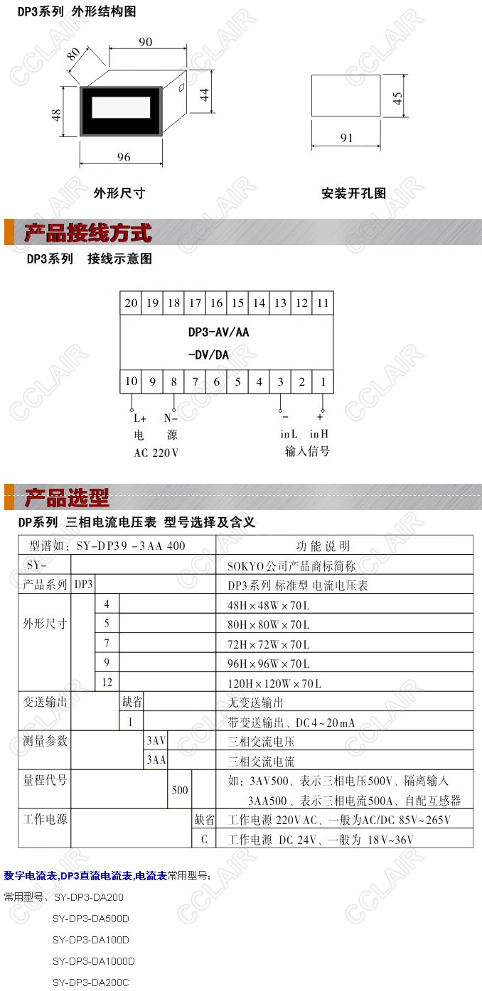 SY-DP3-DA200,SY-DP3-DA500D,SY-DP3-DA100D,DP3-DA200,DP3-DA500D,DP3直流電流表