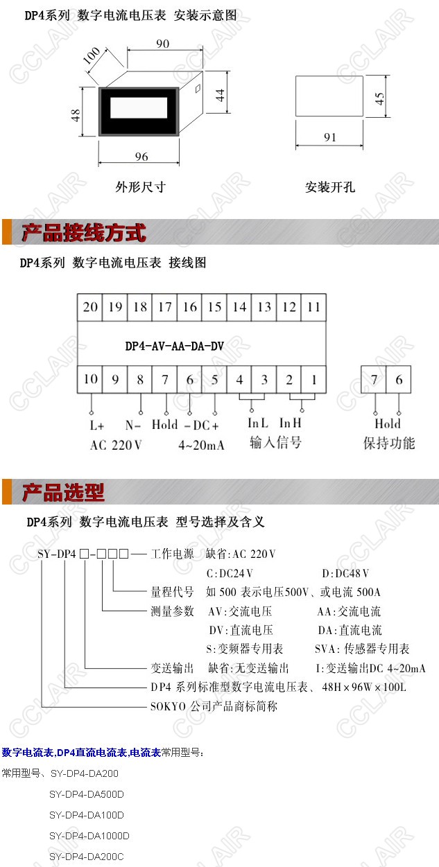 SY-DP4-DA200,SY-DP4-DA500D,DP4-DA200,DP4-DA500D,DP4直流電流表