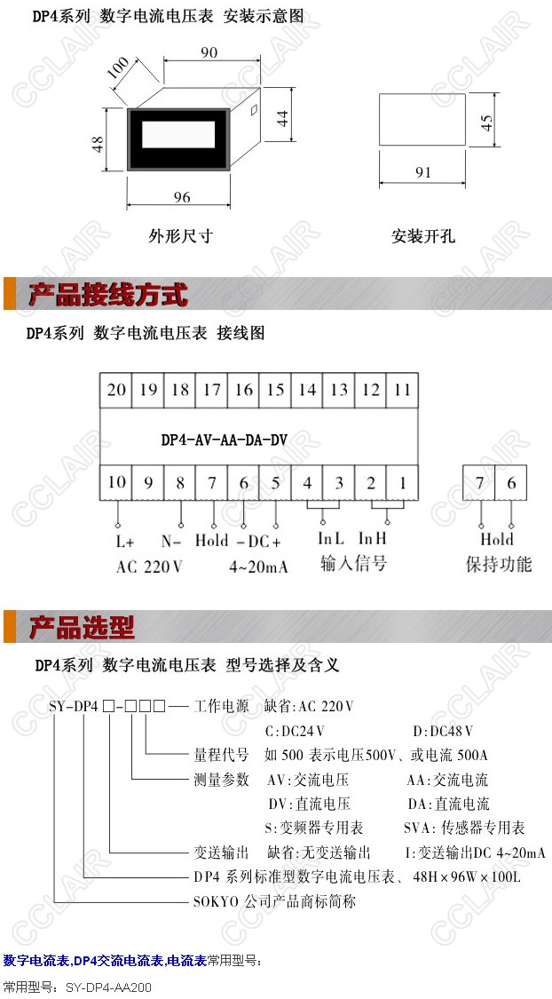 DP4-AA500,DP4-AA500C,DP4-AA500D,DP4I-AA500,DP4I-AA500C,DP4I-AA500D,DP4交流電流表