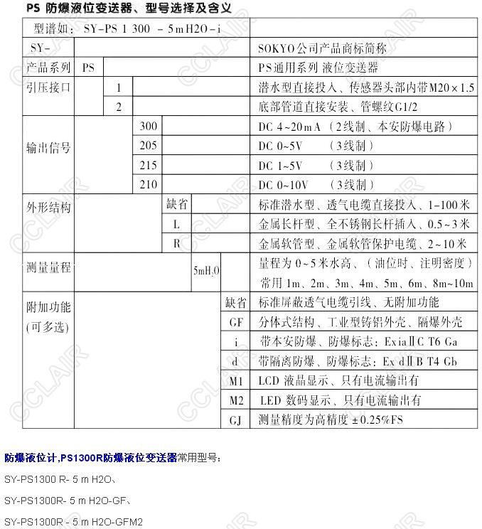 SY-PS1300R-5mH2O,SY-PS1300R-5mH2O-GF,PS1300R-5mH2O,PS1300R防爆液位變送器