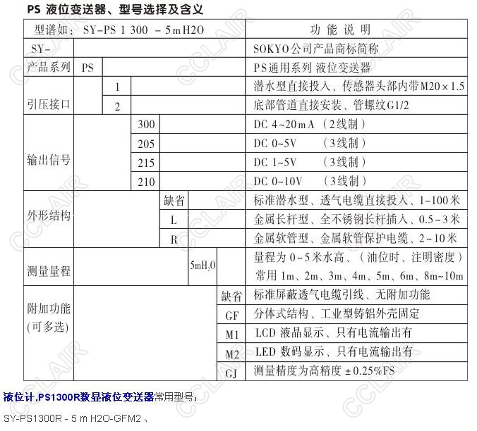 SY-PS1300R-5mH2O-GFM2,PS1300R-5mH2O-GFM2,PS1205R-5mH2O-GFM2,PS1300R數(shù)顯液位變送器