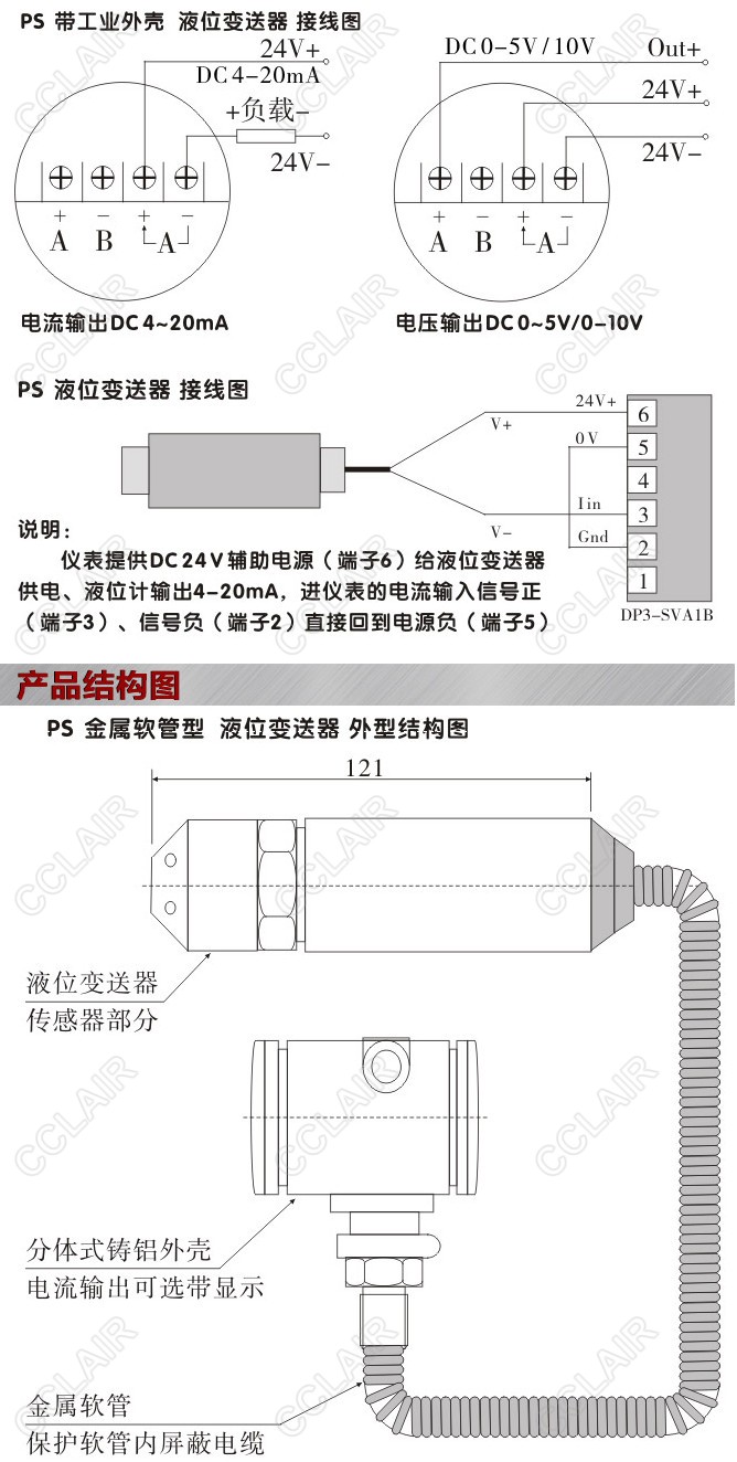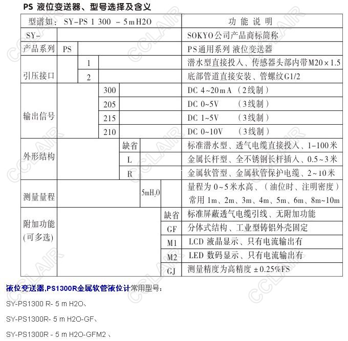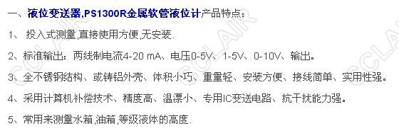 SY-PS1300R-5mH2O,SY-PS1300R-5mH2O-GF,PS1300R-5mH2O,PS1300R金屬軟管液位計