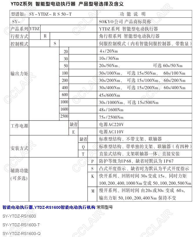 SY-YTDZ-RS1600,SY-YTDZ-RS1600-T,SY-YTDZ-RS1600-Q,YTDZ-RS1600智能電動(dòng)執(zhí)行機(jī)構(gòu)