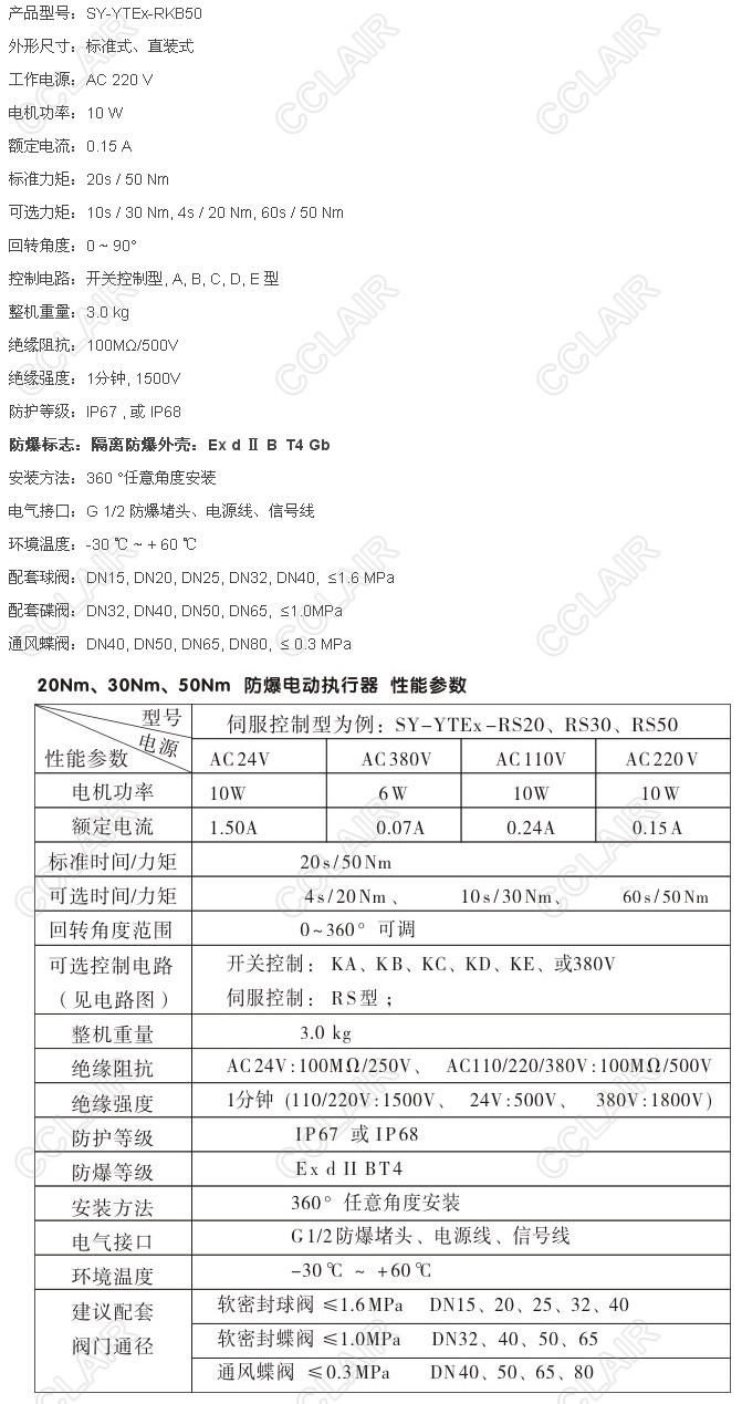 SY-YTEX-RKB50,SY-YTEX-RKB50-T,SY-YTEX-RKB50-Q,YTEX-RKB50防爆電動執(zhí)行器
