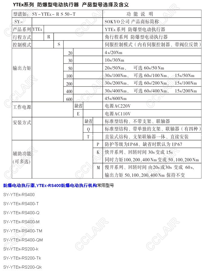 SY-YTEX-RS400,SY-YTEX-RS400-T,SY-YTEX-RS400-Q,YTEX-RS400防爆電動執(zhí)行機構(gòu)