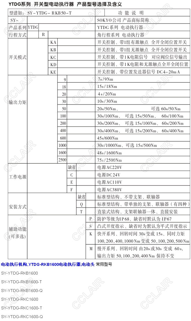 SY-YTDG-RKB1600,SY-YTDG-RKC1600,YTDG-RKB1600電動執(zhí)行器電動頭