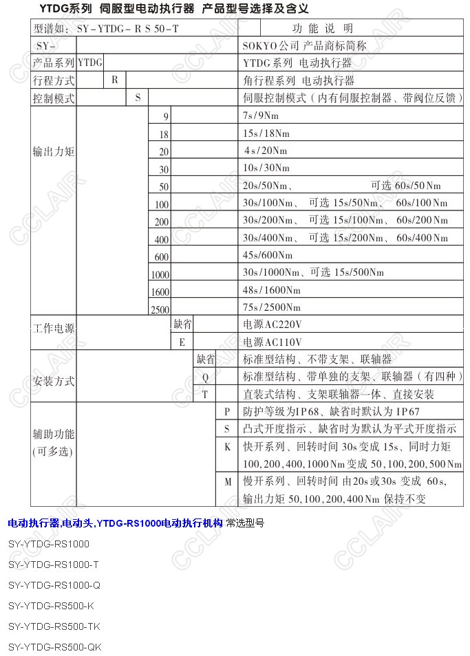 SY-YTDG-RS1000,SY-YTDG-RS1000-T,SY-YTDG-RS1000-Q,YTDG-RS1000電動執(zhí)行機(jī)構(gòu)