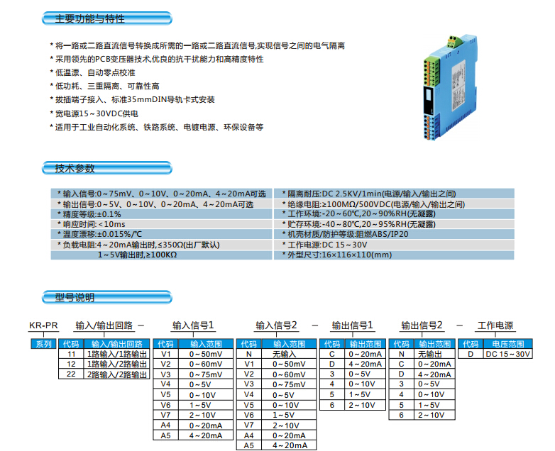KR-PR,KR-PR11,KR-PR12,KR-PR22信號隔離分配器