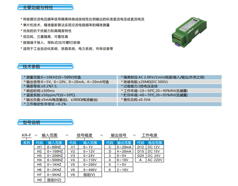 KR-F,KR-F-H1,KR-F-H2,KR-F-H3,KR-F-H4,KR-F-H5,KR-F-H6,KR-F-H7,KR-F-H0頻率隔離變送器