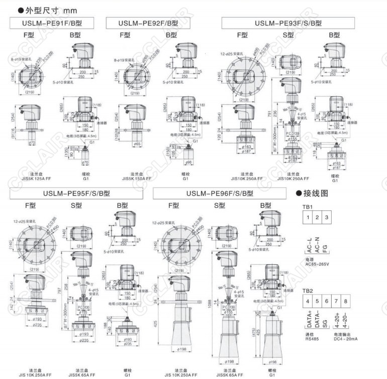 USLM,USLM-PE91F/B,USLM-PE92F/B,USLM-PE93F/S/B,USLM-PE95F/S/B,超聲波料位計