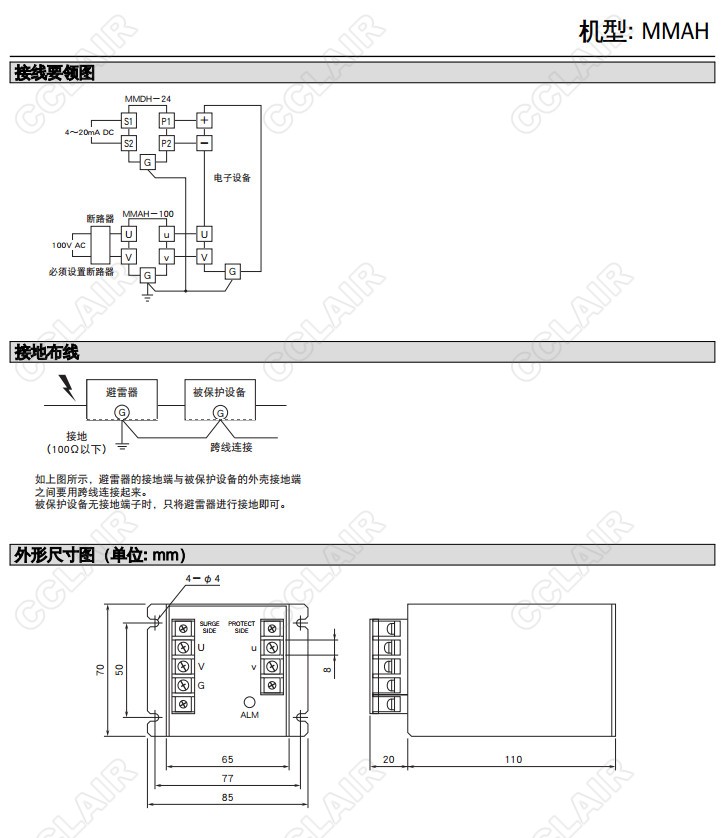 MMAH-100/MMAH-200,最大負(fù)載10A 壁面安裝 超高容量型 快速型避雷器