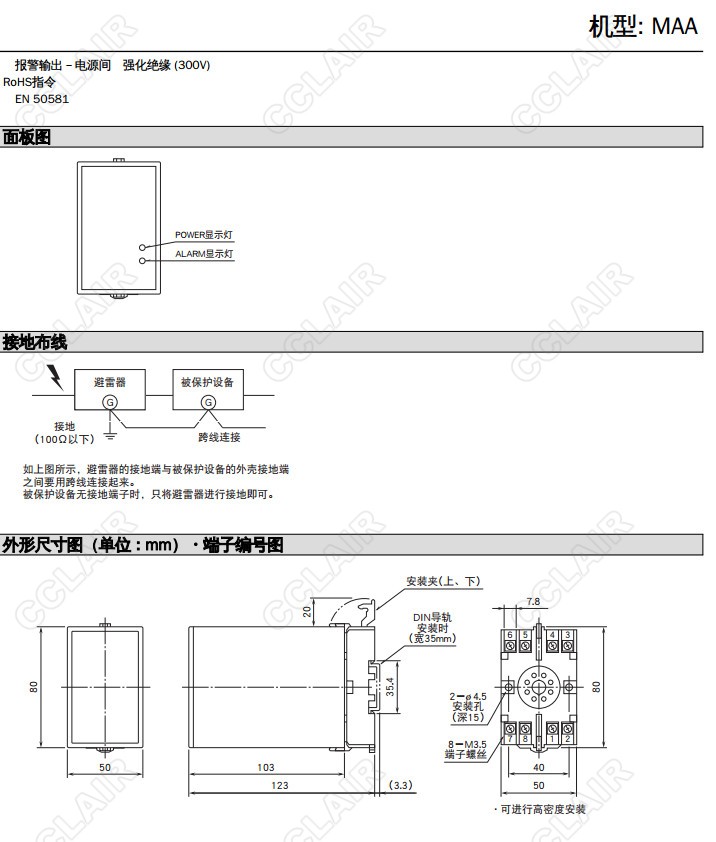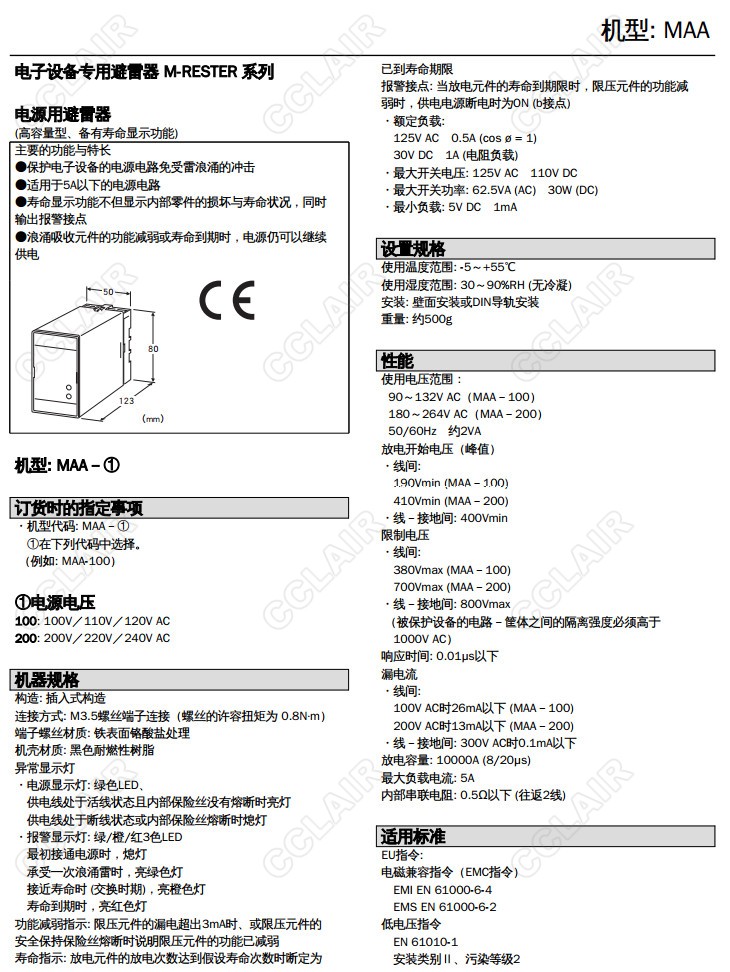 MAA-100/MAA-200,最大負載5A 壽命顯示功能避雷器