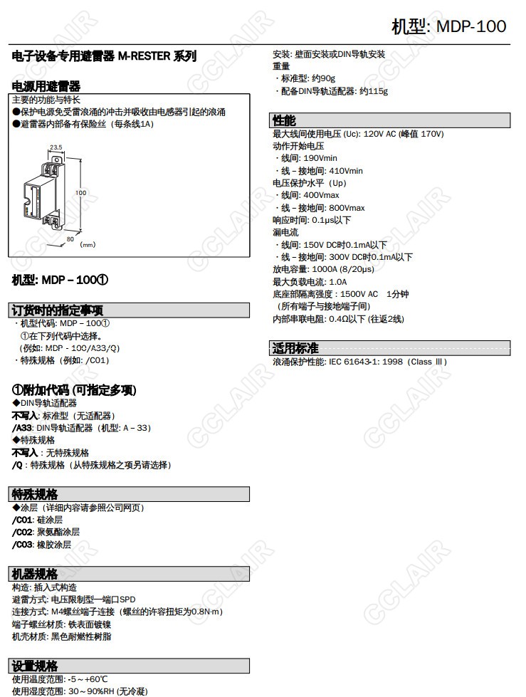 MDP-100/MDP-200, MDP-100/A33,MDP-100/Q,最大負(fù)載1A 插入型MDP-200/A33,MDP-200/Q避雷器