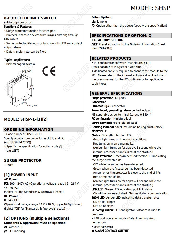 SHSP(CE標(biāo)準(zhǔn)),SHSP-1-M2/N,SHSP-1-M2/CE,帶防雷功能 8端口防雷集線器SHSP-1-R/N,SHSP-1-R/CE,避雷器
