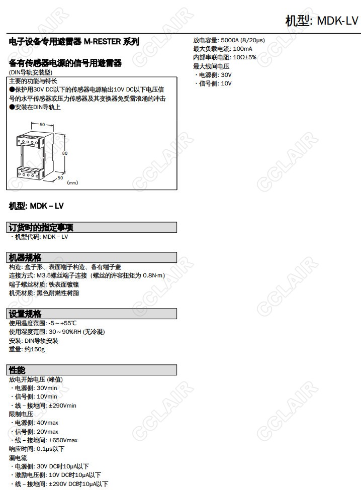 MDK-LV,自備傳感器配電功能 信號(hào)用低位安裝型避雷器