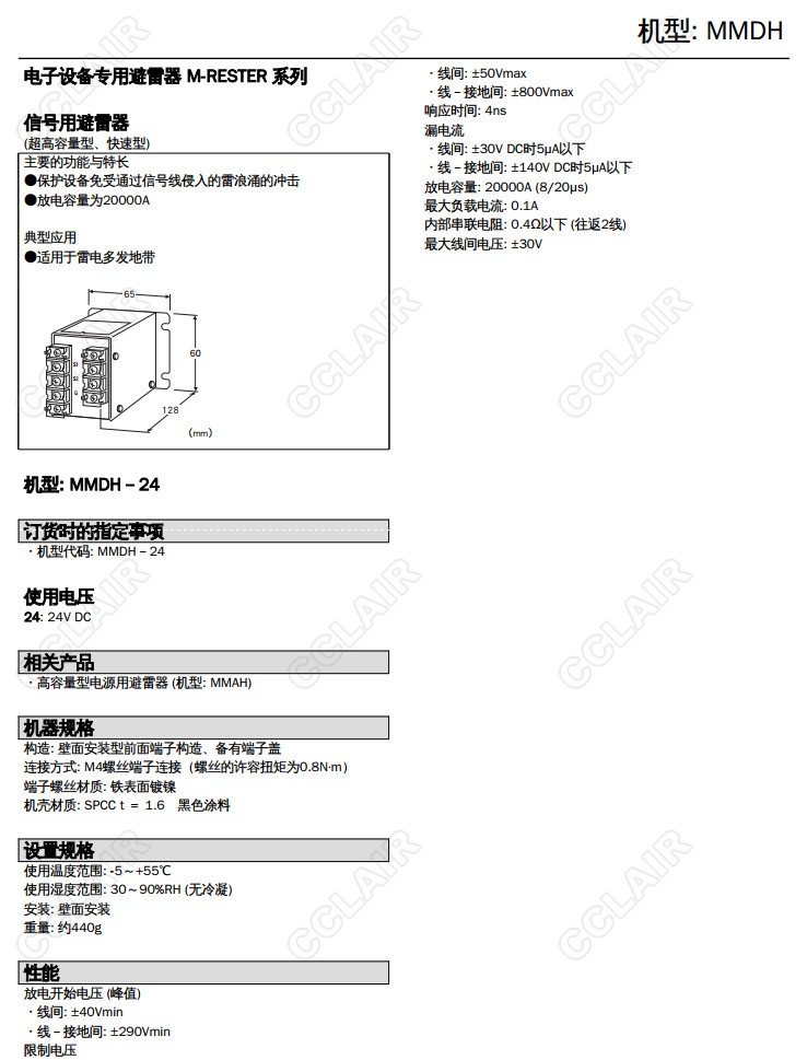 MMDH-24,4-20mA直流、脈沖信號(hào)用 超高容量型 快速型避雷器